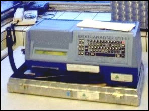 Bij een ademtest worden door middel van een draagbaar apparaat sporen van alcohol opgespoord in de uitgeademde lucht.