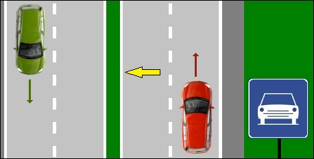 ![]() | Wil je een autosnelweg verlaten, dan begin je best pas te remmen van zodra je op de afrit rijdt. |