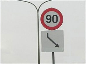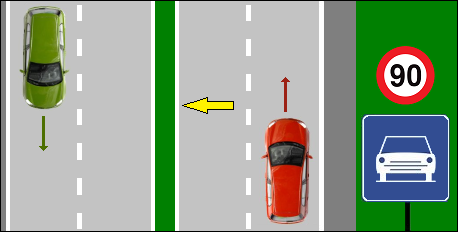 ![]() ![]() | Verbodsbord | Maximaal toegelaten snelheid op de afrit: 90 km/uur. |