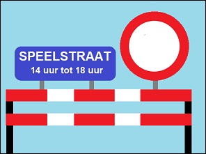 ![]() | Bestuurders die in een speelstraat toegelaten zijn, mogen er slechts stapvoets rijden. |