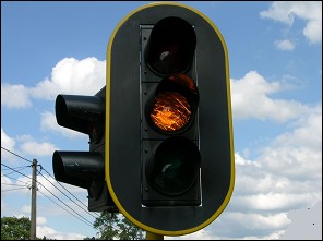 ![]() | Soms is bij de ronde verkeerslichten een groene pijl geplaatst. Brandt een groene pijl, terwijl ook het ronde rode licht brandt, dan wil dit zeggen dat voertuigen in de richting van de pijl mogen afslaan. Maar wil een bestuurder het kruispunt oprijden, moet hij wel heel voorzichtig zijn en voorrang verlenen aan alle weggebruikers die uit de andere richtingen komen. |