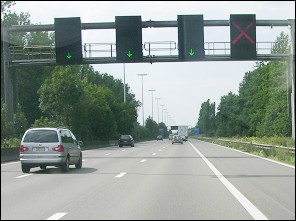 ![]() | Op sommige grote wegen hangen boven de rijstroken pijlen. |