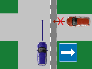 ![]() | Wanneer een bestuurder uit een verboden rijrichting komt gereden, geldt de voorrang van rechts ook niet. |